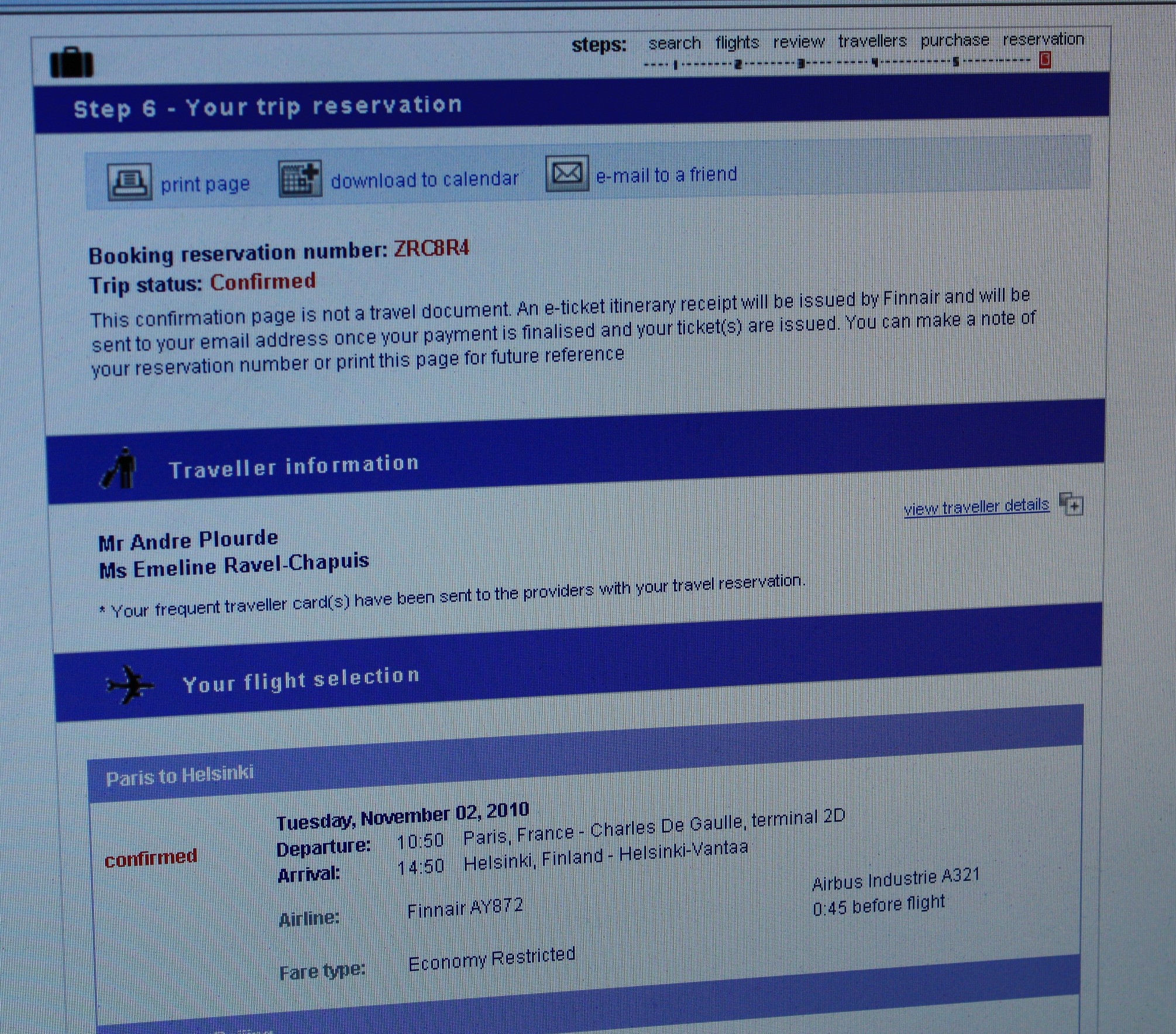 Pour la modique somme de 3625 € chacun, nous nous envolerons le 2 Novembre 2010, donc dans 4 mois, avec pour première escale Helsinki.
