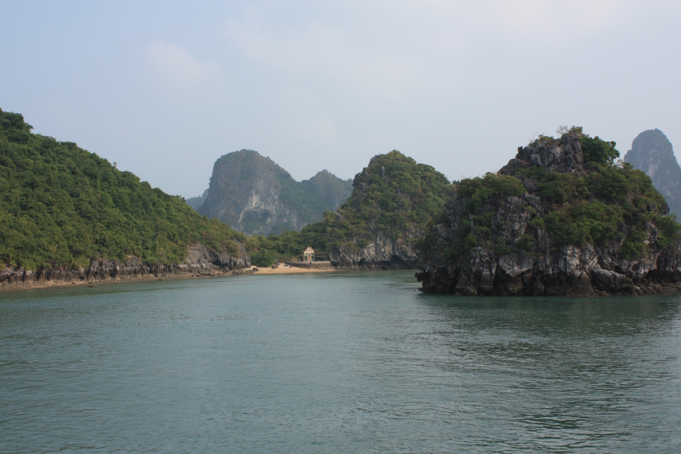 Après cette balade, nous rejoignons l’hôtel de la ville de Cat Ba, et nous prenons conscience que nous ne dormirons plus dans un pareil confort avant pas mal de temps! Après un repas bien mérité (et encore une fois excellent), nous partons en excursion sur l’île aux singes. Le guide nous a prévenu de faire attention car ces singes sont de véritables voleurs, capables de partir en un instant avec un pull, une chaussure ou un appareil photo. Nous passerons à peine une heure sur cette île, mais nous apercevrons quand même quelques singes sur la plage. Cat Ba abrite un singe en voie de disparition, le semnopithèque, primate le plus rare de la terre. Evidemment, ce n’est pas cette espèce de singes que nous voyons, mais nous sommes quand même contents. Cependant, nous sommes attristés de voir l’attitude des locaux à leur égard: pour les attirer, et sans doute faire plaisir aux touristes, ils les ont habitués à accourir lorsqu’une canette de coca est déposée sur la plage. Ces canettes sont remplies d’alcool, ce qui les rend dépendants des hommes, et complètement ivres du coup. Retour à l’hôtel, puis bière à 0,20€ avec toute la troupe, sur le bord d’un trottoir, à la bonne franquette façon Vietnam.