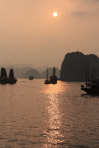 Mercredi 8 heures du matin, nous sommes prêts, tout excités à la perspective de partir à la découverte de la Baie d’Halong. Un minibus vient nous chercher à l’hôtel, déjà rempli de 12 autres personnes, avec qui nous passerons les 2 ou 3 prochains jours, selon le programme qu’elles ont choisi. Pour notre part, nous avons décidé de prendre le tour organisé de 3 jours, qui nous permettra de passer 2 jours et une nuit dans la Baie d’Halong, à bord d’un bateau, et une journée et une nuit sur l’île de Cat Ba.