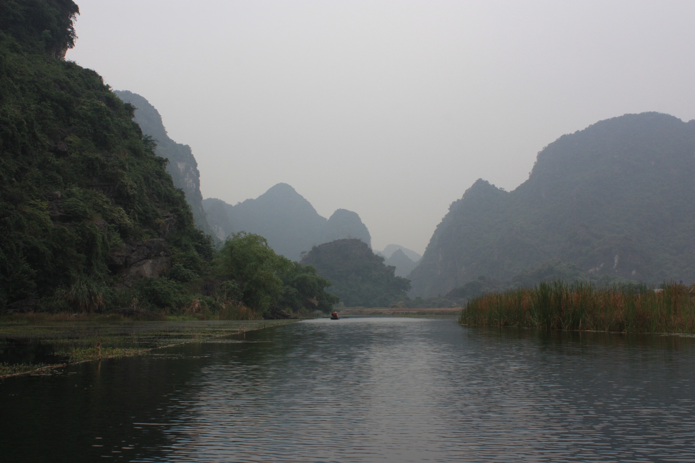Nous montons à bord d’une petite embarcation de bambou pour une balade de 3 heures, à travers les dédales des pains de sucre et les grottes. L’eau est limpide et le paysage très beau! Nous avons un peu pitié de notre guide qui rame derrière nous donc nous l’aidons un peu, avec des semblants de rames en bois. Ces petits brins de femme sont impressionnantes, on les voit sans arrêt s’affairer dans les champs, ramer sur des embarcations de fortune pour vendre 2-3 bricoles…Elles sont toutes rikiki mais ont une forme et une endurance remarquable! Notre guide nous fait donc découvrir la succession de grottes de Trang An, et si certaines sont encore à l’état sauvage, avec un plafond très bas et un passage parfois étroit, certaines ont déjà été recreusées par l’homme, afin de faciliter le passage des touristes.