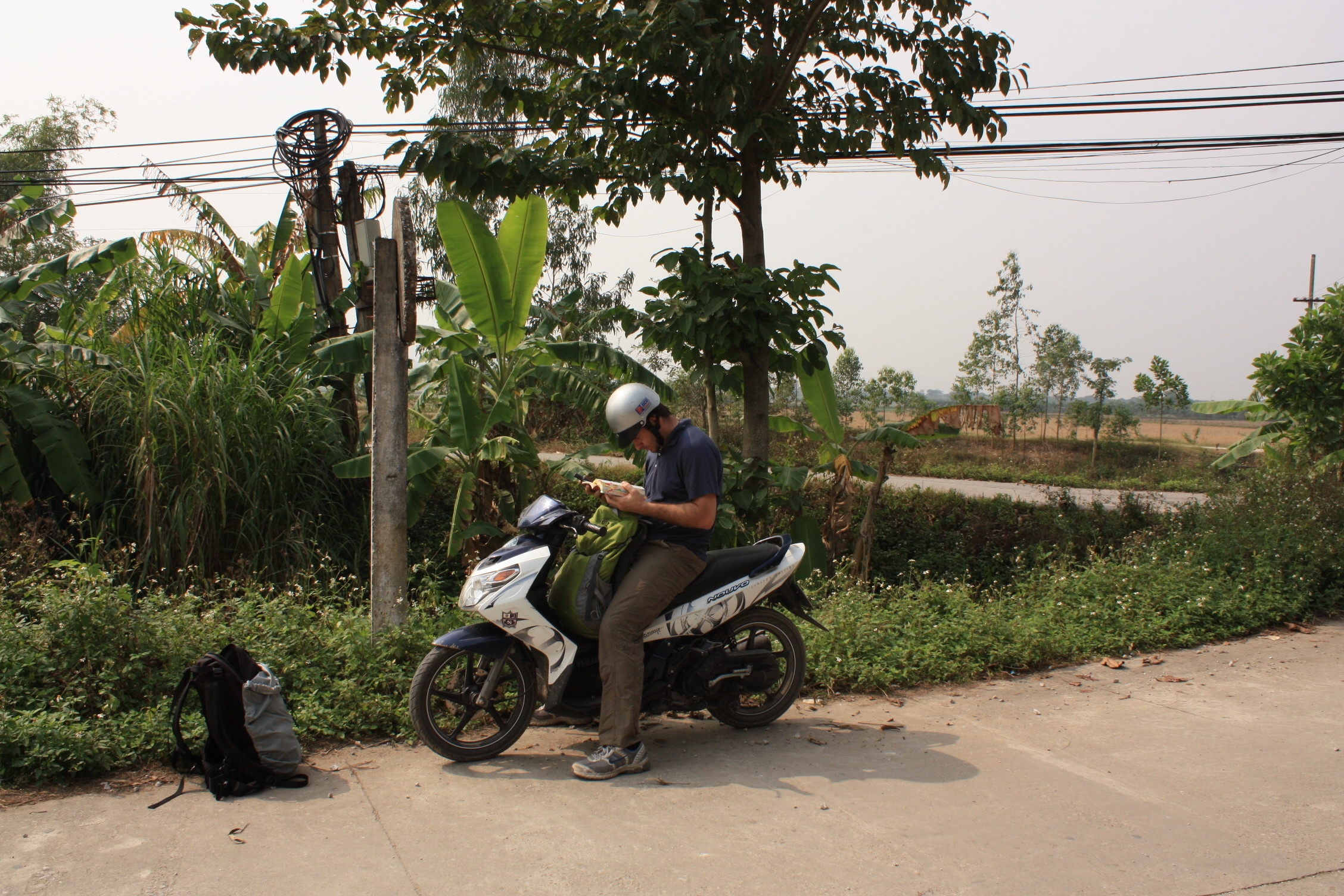 Le lendemain, nous choisissons donc de louer un scooter plutôt que des vélos, et nous démarrons la journée par la visite de Hoa Lu, qui fut la capitale du Tonkin pendant une quarantaine d’années, aux alentours de l’an 1000. A cette époque s’élevait une citadelle, mais il n’en reste plus rien. Seuls 2 temples sont toujours présents, ainsi qu’une petite pagode. Nous visitons donc assez rapidement ce site puis nous décidons de nous rendre au village flottant de Kênh Gà, à une dizaine de km au nord. Malheureusement, nous ne trouverons jamais ce village, dont la particularité des ses habitants est qu’ils utilisent leurs pieds plutôt que leurs mains pour ramer! A la place de visiter ce village, nous nous perdons donc dans la campagne, cheveux au vent et poussière dans la figure, au milieu des rizières et cela ne gâche en rien la journée!