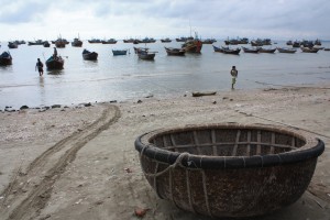 A part ces quelques visites, Mui Ne rimera pour nous avec farniente au soleil, avachis sur les transats sur la plage de l’hôtel à regarder passer les petits bateaux ronds en bambou, avec baignades rafraichissantes dans la mer ou dans la piscine, avec chasse aux [photos de] lézards, et avec coucher de soleil. La grosse vie sale quoi!! 😉