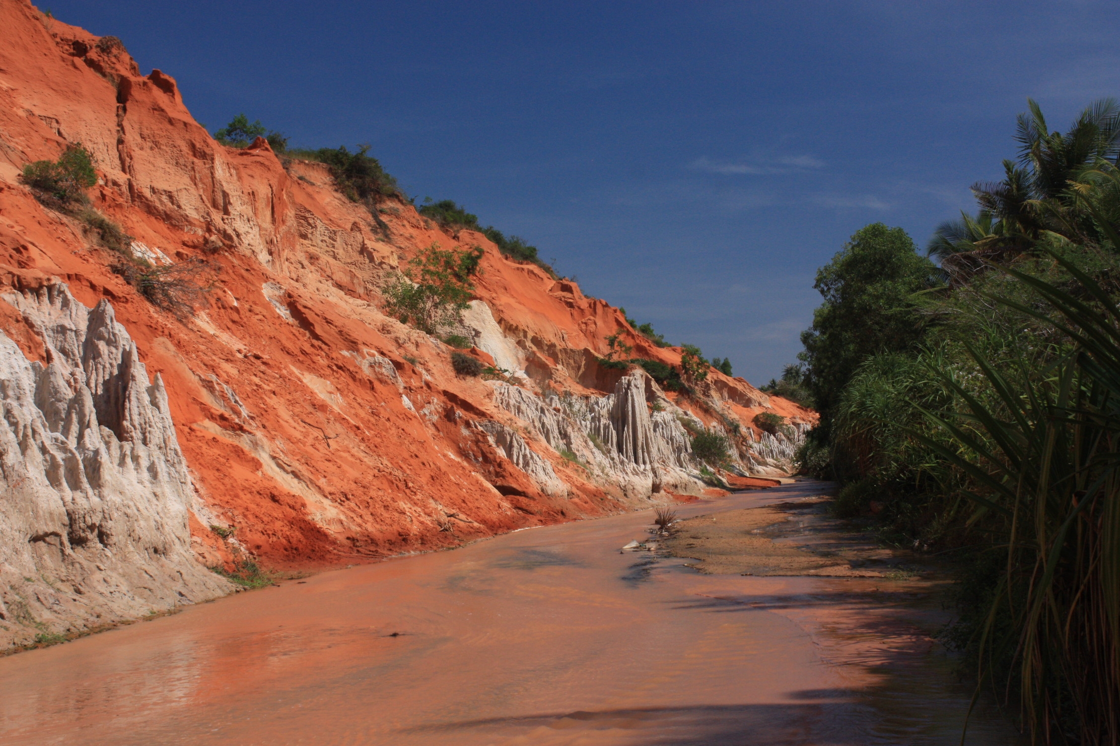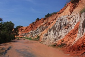 Mui Ne possède également un canyon rouge, mais malheureusement, celui-ci est en ce moment fermé au public. Nous avons posé plusieurs fois la question, mais nous ne savons toujours pas si il est fermé à cause des risques de pluie de l’hiver, rendant le canyon dangereux en cas de montée de eaux, ou bien si il y a eu un effondrement dû à des pluies abondantes.