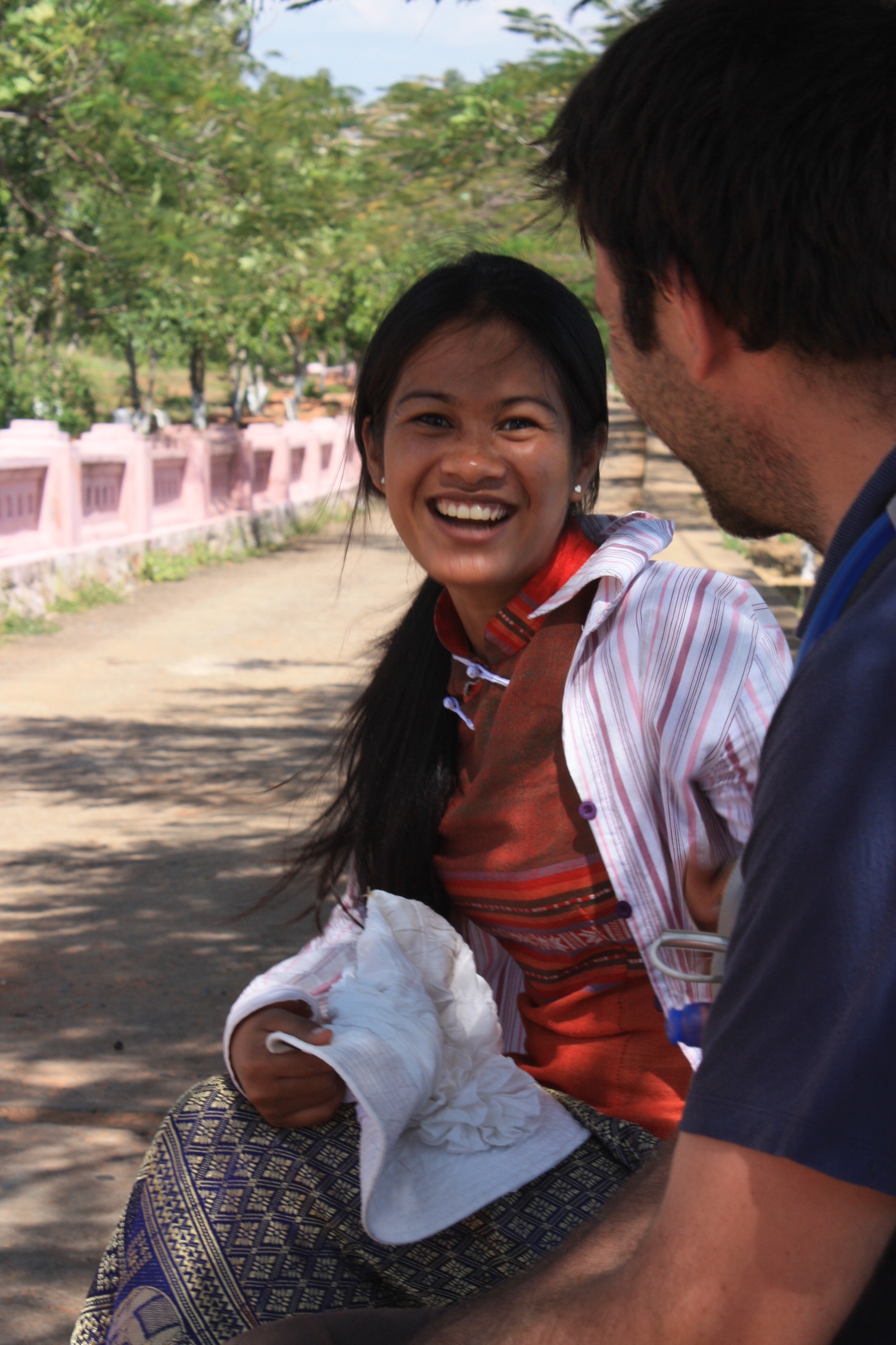 Nous profitons d’avoir loué le scooter pour ce 2ème jour, pour nous rendre au tours Cham de Po Shanu. Après avoir vu celles de Nha Trang et celles de Hoi An (site de My Son), celles-ci paraissent un peu fades, car seules 3 petites tours s’y dressent. Cependant, nous nous régalons de cette visite, car nous rencontrons une jeune fille de cette minorité Cham. Celle-ci accoste André, ayant pitié de lui, seul sur son banc, pendant que je prends des photos des tours. Charmante jeune fille aux longs cheveux noirs brillants, belles dents blanches, et belle peau foncée, André est ravi 😉 Elle parle un excellent anglais appris à l’école, et souhaite le pratiquer un petit peu. On passe de longues et délicieuses minutes en sa compagnie!
