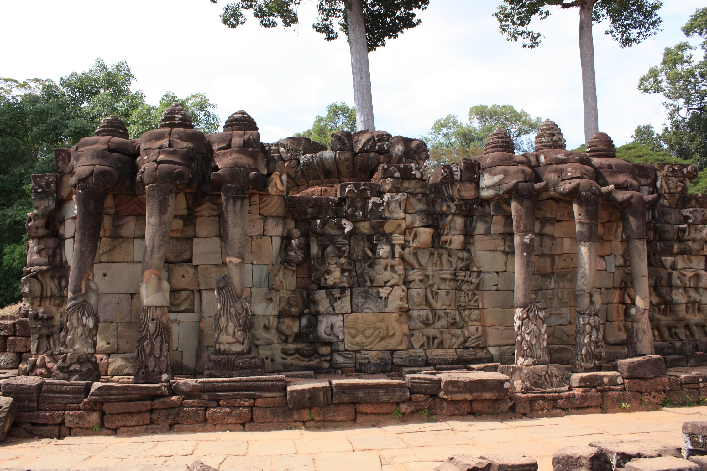 Pour assister aux spectacles donnés sur la grande place, un des rois fit construire une grande terrasse, de 350m de long, la Terrasse des Eléphants, qui comme son nom l’indique, est décorée de fresques d’éléphants sculptés et d’éléphants à 3 têtes.