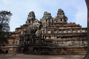 Ta Keo est le suivant sur le parcours. Celui-ci est bien plus impressionnant. Il s’agit d’une massive pyramide sur plusieurs niveaux, aux escaliers extrêmement pentus et vertigineux, qu’il faut escalader, plutôt que d’en monter les marches. Dépourvu de sculptures, il a été construit à la fin du Xe siècle et aurait inspiré la construction d’autres temples angkoriens.