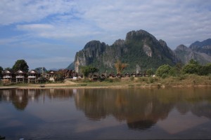 Après la capitale, nous continuons notre montée vers le nord du pays, et posons nos valises à Vang Vieng. Cette petite bourgade à 160 km de Vientiane, est réputée pour être très touristique, et à peine arrivés, nous ne pouvons que constater l’étendue des dégâts. Il y a des « blancs » plein la rue principale, qui se promènent torse nu, et parfois même pieds nus pour les hommes les plus distingués, et en maillot de bain et mini robe transparente pour ces demoiselles. Les restaurants passent en boucle des DVD de Friends ou d’autres séries américaines, que les clients regardent avachies sur des banquettes. Nous devons maintenant nous trouver dans la catégorie des vieux rabats-joie, mais sincèrement, nous trouvons le spectacle affligeant! Tous ces jeunes viennent ici pour l’attraction du coin: le tubing. Il s’agit de descendre une rivière, assis dans une grosse chambre à air, en prenant surtout soin de faire de nombreux arrêts dans les bars le long du trajet, où l’alcool coule à flot.