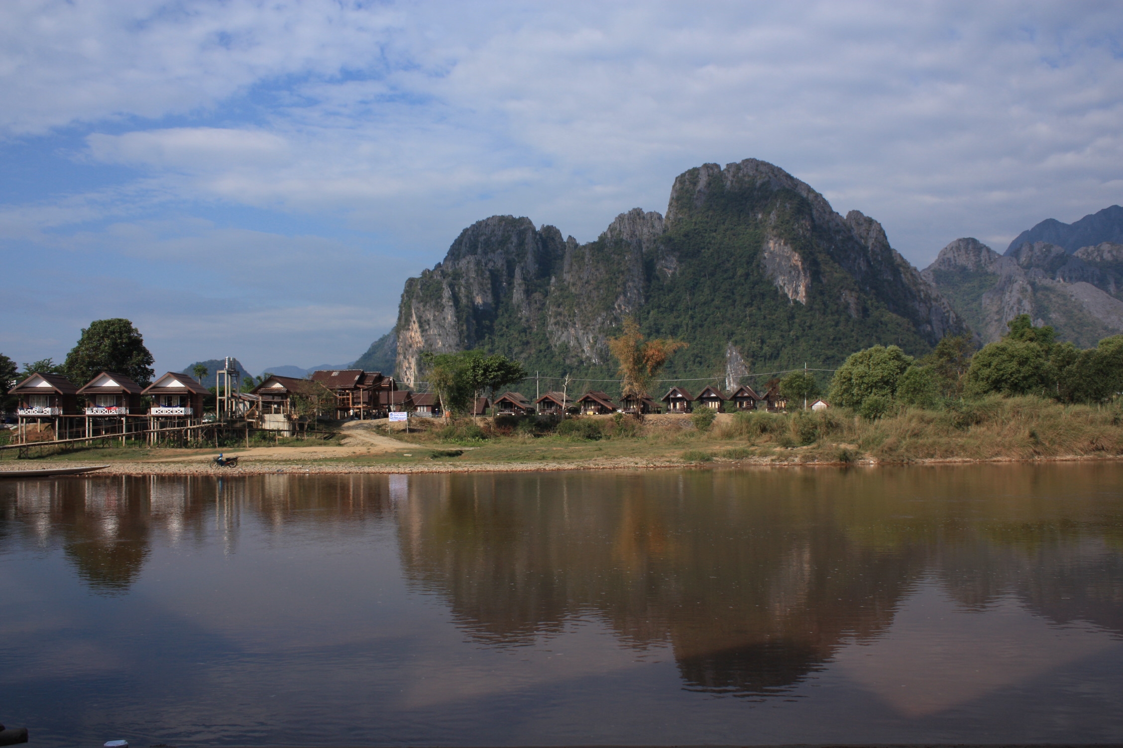 Nous finissons la journée avec 25 km dans les jambes, épuisés mais heureux!! La balade était superbe, au milieu de ces pains de sucre, rizières (sèches!) et petits villages. Nous terminons notre visite de Vang Vieng par un grand moment: après les pains au chocolat de Vientiane, André déniche le restaurant qu’il cherchait depuis plusieurs mois: ce plat n’en porte peut-être pas le nom, mais il ressemble à s’y méprendre à une vraie poutine québécoise 😉