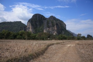 Vang Vieng est en effet entourée de pains de sucre en calcaire, présentant de nombreuses grottes, et de rizières. Elle est d’ailleurs surnommée « la Baie d’Halong du Laos » mais nous, nous la qualifierons plutôt de « Ninh Binh du Laos ». Eh oui, souvenez-vous de cette petite ville au sud de Hanoi, au Vietnam, cette « Baie d’Halong terrestre » que nous ne sommes pas peu fiers de connaître, tellement le site est peu visité!! A Vang Vieng, les grottes sont sacrées et contiennent souvent des statuettes de bouddhas, qui font l’objet de pèlerinages au moment des fêtes.
