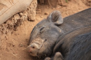 Durant tout le temps passé là-bas, nous ne croiserons quasiment aucun homme (nous n’avons pas trop compris où ils étaient), mais quelques femmes, beaucoup d’enfants, et surtout, énormément de poules, cochons et porcelets noirs, ainsi que des chiens et chiots, ressemblant à des dingos. Ce qui nous a frappé, c’est le manque d’affection de ceux-ci, considérés comme des animaux de la ferme au même titre qu’un cochon, ne connaissent pas les caresses et ne semblent même pas intéressés par les nôtres.