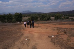 Sur les sites, les pierres blanches et rouges montrent les endroits débarrassés des bombes en profondeur. Les passages sont étroits!