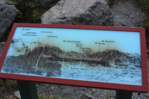 En arrière plan de ce minuscule et triste glaçon, se trouve le glacier Huddleston, qui lui, est encore bien massif, et qui s’étend entre le mont Shefton et The Footstool.