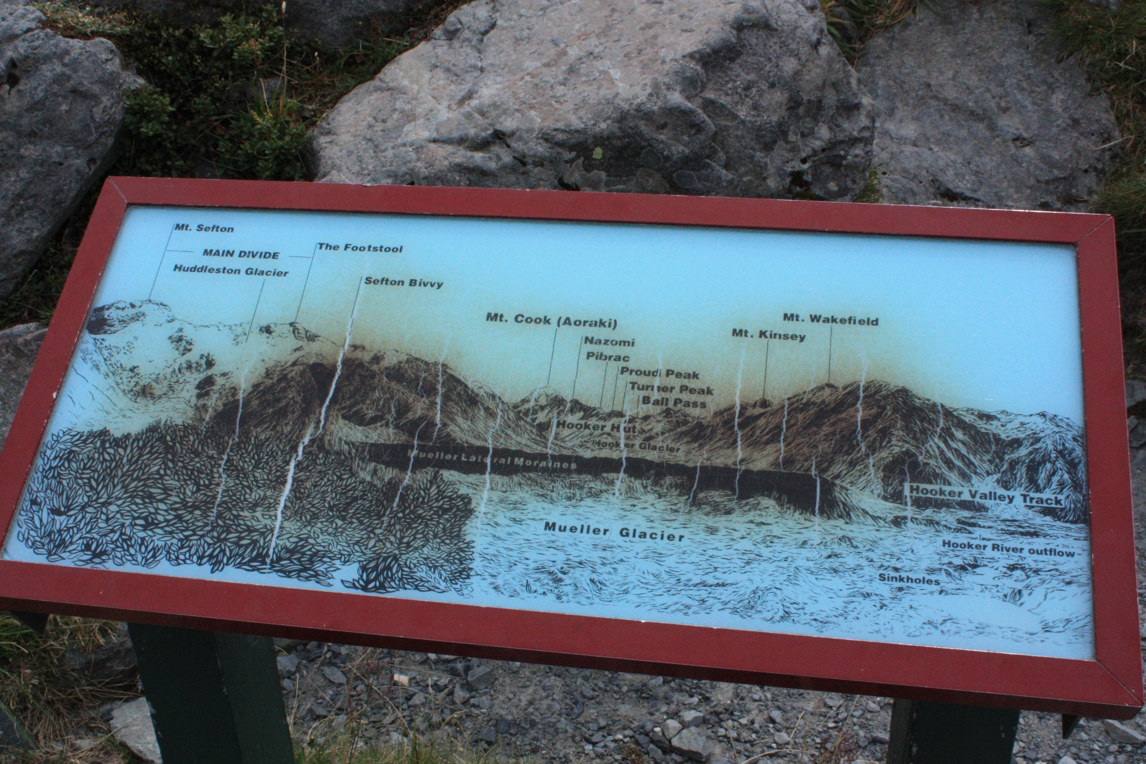 Le mont Cook, ou Aoraki, pour son nom maori, est le point culminant du pays, avec 3754m d’altitude et une jolie forme pyramidale. Son nom anglais a été donné en 1851, en l’honneur du navigateur James Cook, qui fut le premier à explorer les côtes de la Nouvelle-Zélande en 1770, même si celui-ci n’avait pas aperçu ce sommet. Cette montagne donne naissance au glacier Hooker, et alimente le glacier Tasman, le plus long du pays. Son sommet est sous la neige toute l’année et son ascension est donc réservée à des alpinistes expérimentés. Seules 35 personnes par an grimpent le mont Cook, en une vingtaine d’heures et d’un seul trait! Nous n’en ferons évidemment pas partie cette année, mais qui sait, peut-être un jour…