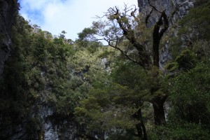 Pour en revenir au parc Abel Tasman, nous n’avions visiblement pas bien lu le guide, car nous apprenons à l’office du tourisme, que les balades qui nous semblaient intéressantes ne sont pas accessibles par la route. L’unique chemin y menant est un sentier pédestre de plusieurs kilomètres longeant la côte. Il est également possible d’y aller en bateau mais je crois que le coût de la vie ici nus a rendu radins. Nous décidons tout de même d’aller voir le trou Harwood, au milieu de la forêt choisie par Peter Jackson pour devenir la forêt Chetwood du « Seigneur des Anneaux ». Il s’agirait « du plus grand trou de l’hémisphère sud », avec ses 357m de profondeur, et en effet, c’est assez gros mais comme il n’y a aucune barrière de sécurité et que nous ne voulons pas risquer notre peau, nous ne voyons pas grand chose de celui-ci! Il semblerait plus impressionnant de l’intérieur. La balade en forêt pour l’atteindre était heureusement bien sympathique.