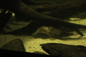 Au cours de ces 2 jours, nous visitons l’aquarium de la ville, qui présente de nombreux poissons/requins et autres espèces marines comme les dragons des mers, endémiques à l’Australie et qui ressemblent à des hippocampes plein d’algues…Nous voyons ici mes premiers ornithorynques (=platypus). Tout le monde connaît cette exception du règne animal, ce mammifère qui pond des oeufs mais qui allaite ses petits, au bec de canard mais à fourrure, avec des pattes palmées ayant un aiguillon plein de venin. Il n’est pas difficile de comprendre pourquoi pendant longtemps, celui-ci a été pris pour une farce de naturalistes. L’ornithorynque appartient à la famille des monotrèmes, qu’il partage avec le seul autre mammifère pondant des oeufs, l’échidné. Il pèse entre 700g et 2,4 kg et mesure 40 à 50 cm.