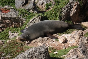 Le lendemain, après avoir à nouveau passé la nuit sur le parking de Parndana, nous nous rendons à Seal Bay pour voir les lions de mer australiens. Entre 1803et 1836, ils furent chassés pour leur huile et leur peau et pratiquement toutes les colonies de lions de mer australiens furent décimés. Ils ont maintenant trouvé un refuge idéal dans cette baie, et ainsi, bien que des individus puissent aller se reposer sur d’autres côtes, la colonie reste en général ici pour se reposer, se reproduire et mourir. Nous sommes chanceux, il y a même des bébés en ce moment!
