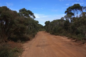 Le lendemain, nous nous rendons directement à Kingscote, la plus grande ville de l’île, avec ses 1600 habitants. Une erreur de jugement d’André lors d’un demi-tour nous fait prendre un trottoir, crevant un pneu comme une bulle de chewing gum. Evidemment, nous sommes dimanche et le garage de la ville est fermé, mais heureusement, la roue de secours semble solide. Nous décidons donc d’attendre les environs d’Adélaïde pour acheter un nouveau pneu, ça nous coûtera moins cher qu’ici. Mais du coup, comme les routes de l’île ne sont pas toutes bitumées, nous nous devons d’être doublement prudents.