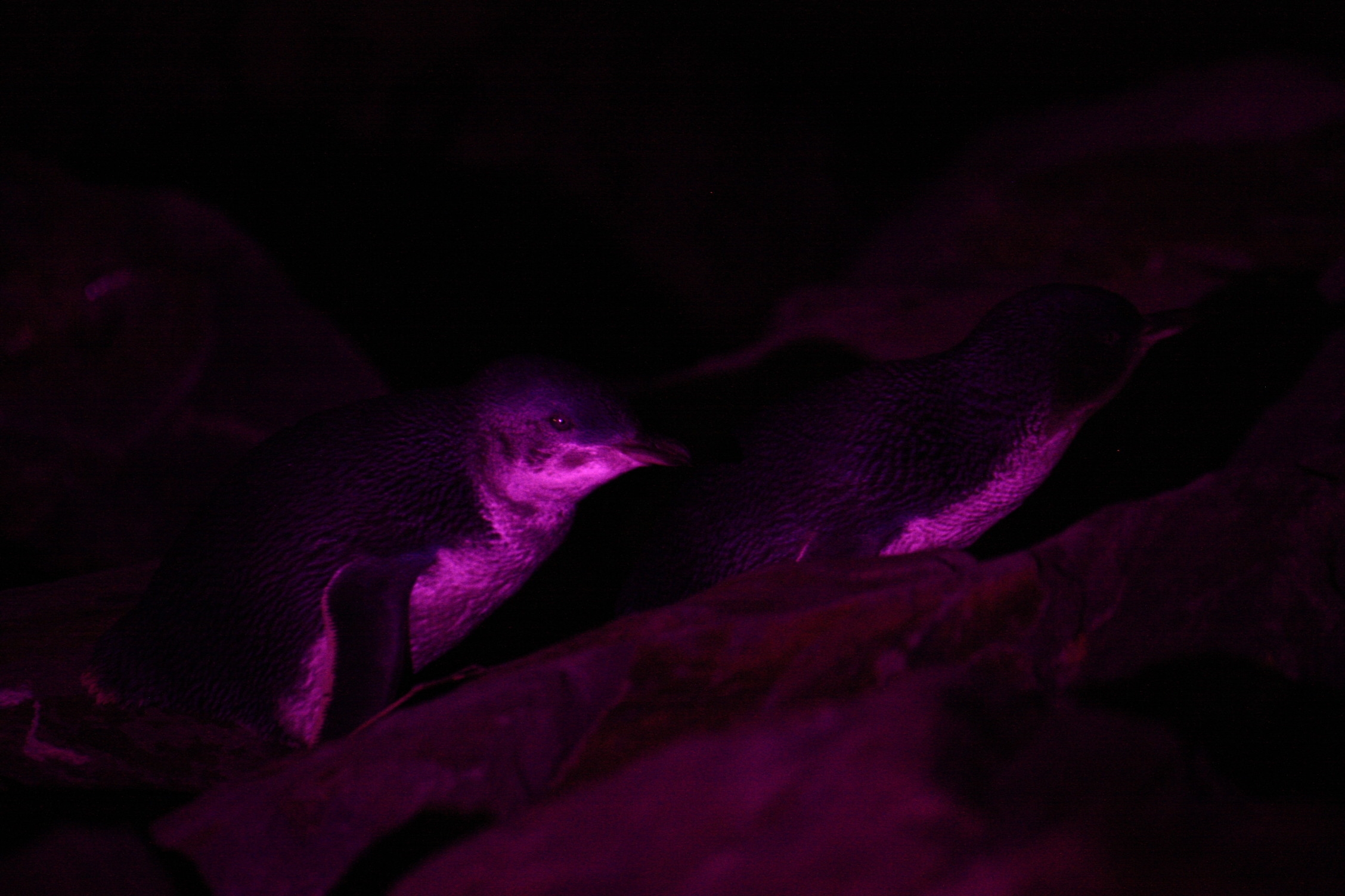 Notre retournons ensuite à Penneshaw, où nous joignons un ranger, pour rencontrer les fameux manchots pygmées. Du haut de leurs 30 cm, ils représentent la plus petite espèce de manchots. Lorsqu’ils chassent en pleine mer, leur plumage bleu du dos leur permet de passer inaperçus vis à vis des prédateurs aériens, tandis que leur ventre blanc les protègent des prédateurs marins qui n’y voient qu’un reflet du soleil à la surface de l’eau.