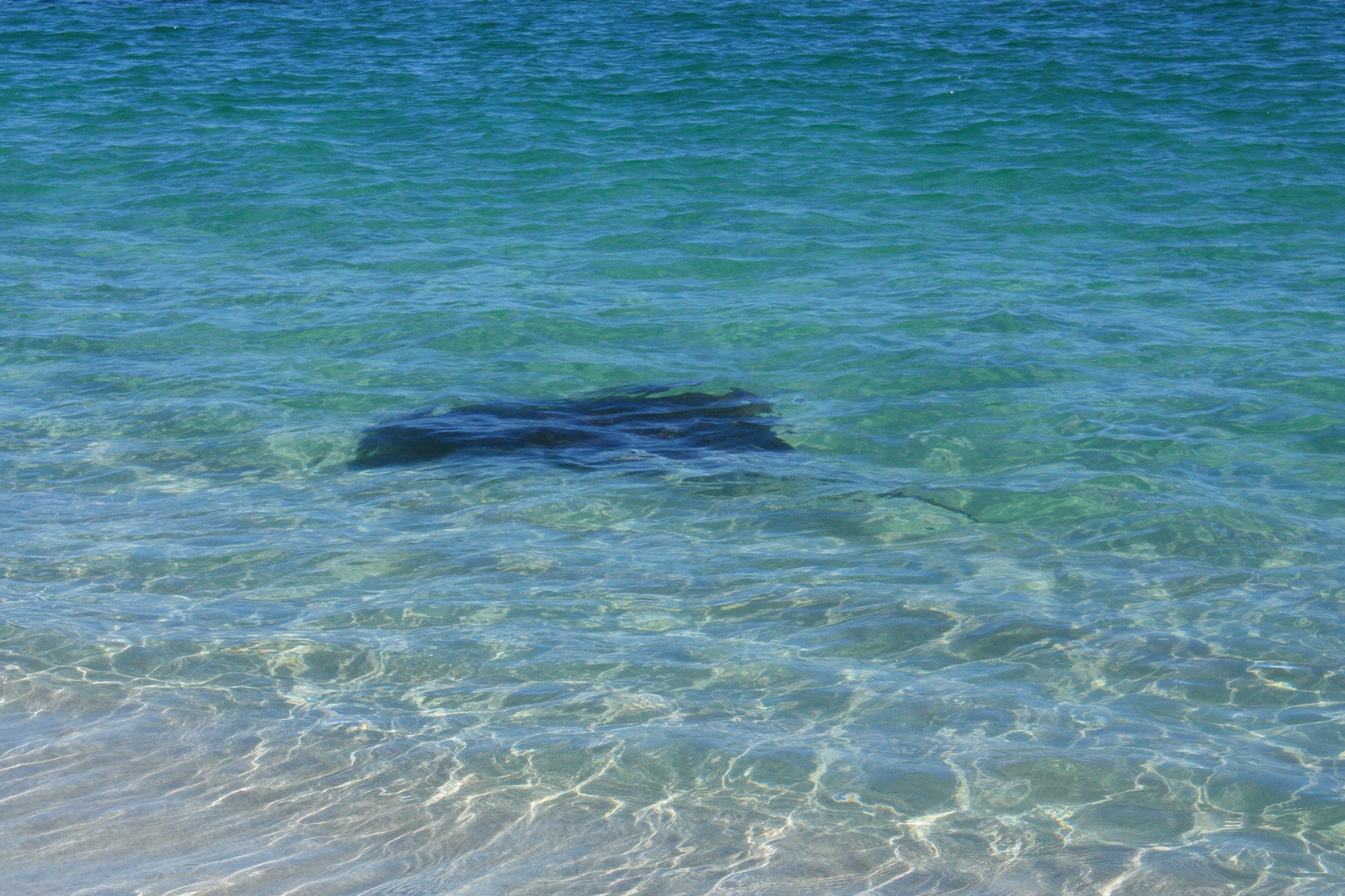 Nous passons une nuit tranquille à Jurien Bay, sans amende malgré l’interdiction de camper, ouf! A 500m de l’entrée d’un camping, ça aurait été facile de nous dénoncer! Alors que le soleil se réveille doucement, nous entendons la voix criarde d’une française: « Lààààà y a une immense raie sur le rivaaaaaaaage!! » Décidément, ils sont toujours aussi discrets ces touristes français! Bref, nous tentons quand même d’apercevoir la bête et nous avons peine le temps de la rejoindre à l’autre bout de la plage que celle-ci s’éloigne vers le large.