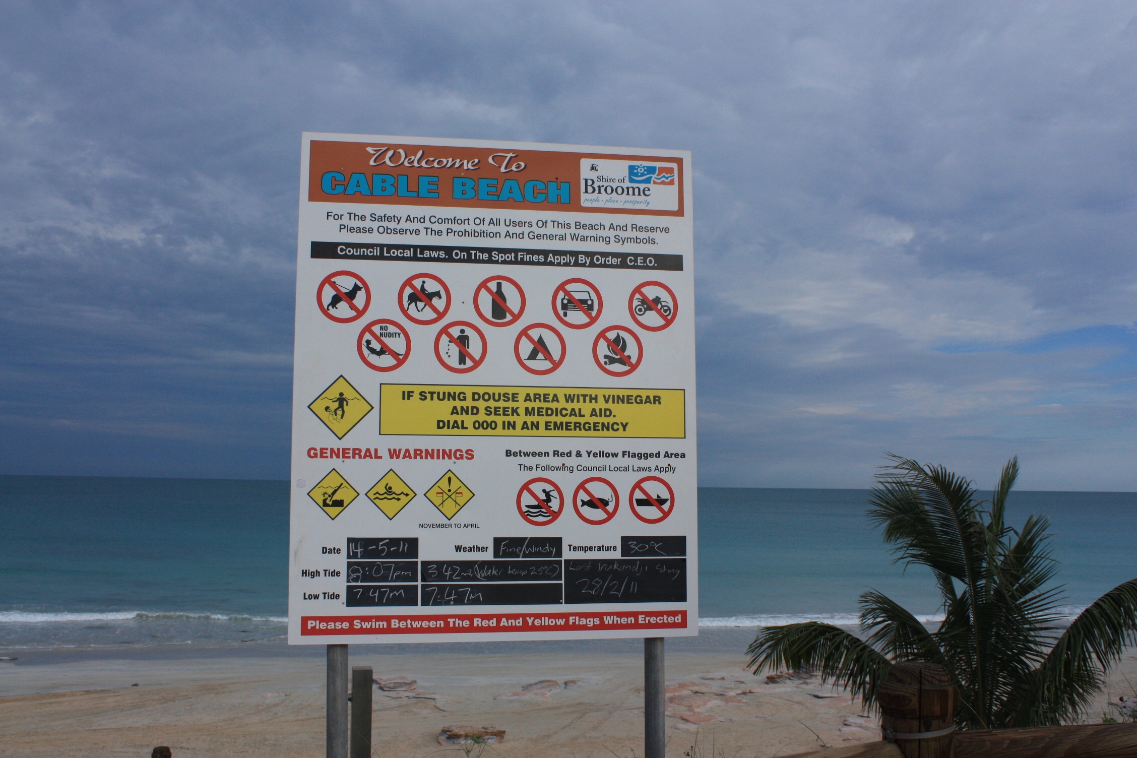Nous ne visitons pas grand chose dans cette ville, mais nous nous rendons jusqu’à l’extrémité sud de sa plage de sable blanc Cable Beach, qui doit son nom à l’ancienne présence d’un câble télégraphique qui reliait Broome à l’île de Java. Elle est réputée pour ses impressionnantes marées, qui peuvent atteindre 9m d’amplitude!