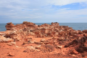 A cette extrémité de plage, à Gantheaume Point, se trouve de superbes formations rocheuses. Celles-ci arborent de splendides couleurs, allant du blanc au rouge en passant par toutes les teintes de orange. Nous sommes également censés y voir des empreintes de dinosaures, mais malgré la marée plutôt basse, nous sommes incapables d’en repérer. Nous nous contentons donc d’observer le paysage, entourés de plusieurs centaines de libellules, et c’est déjà magnifique.