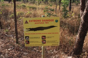 Nous poursuivons notre route jusqu’à Gungurul, un autre départ de promenade. Après le pique-nique, nous lézardons à l’ombre, accablés par la chaleur,et ce n’est qu’en fin de journée que nous nous motivons pour cette toute petite balade, jusqu’à un point de vue. En chemin, nous croisons un panneau « extrême danger » qui fait froid dans le dos. Des crocodiles vivent en effet dans l’intégralité des cours d’eau du parc, interdisant toute baignade, surtout en cette période de fin de saison humide. Mais jusqu’ici, tous les panneaux rencontrés n’ont rien d’effrayants et les locaux n’ont pas l’air de bien les prendre au sérieux. Cependant, celui-ci précise que de humains ont déjà été tués. Bref, après quelques pas en direction de la rivière, nous faisons rapidement demi-tour, ne sachant pas jusqu’à quelle distance de celle-ci nous serions en sécurité. Nous nous contentons donc du point de vue, qui n’a rien de très palpitant. Pour terminer cette première journée, nous prenons la décision de ne pas aller plus loin et nous passons donc la nuit sur ce parking, qui fait également office de camping.