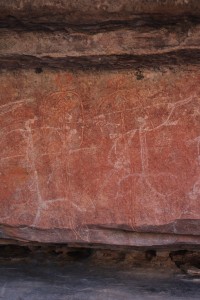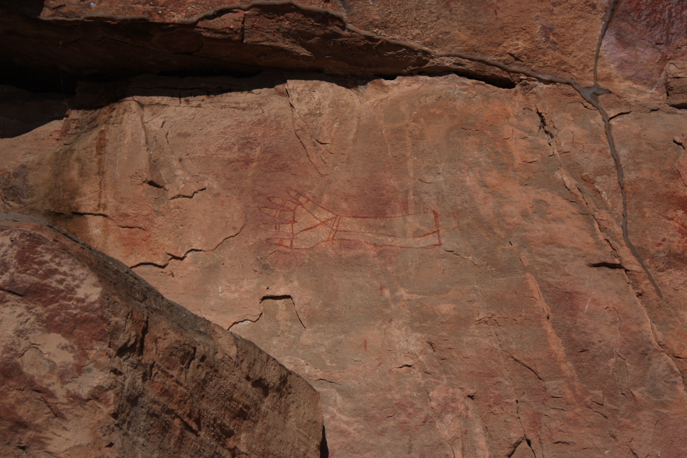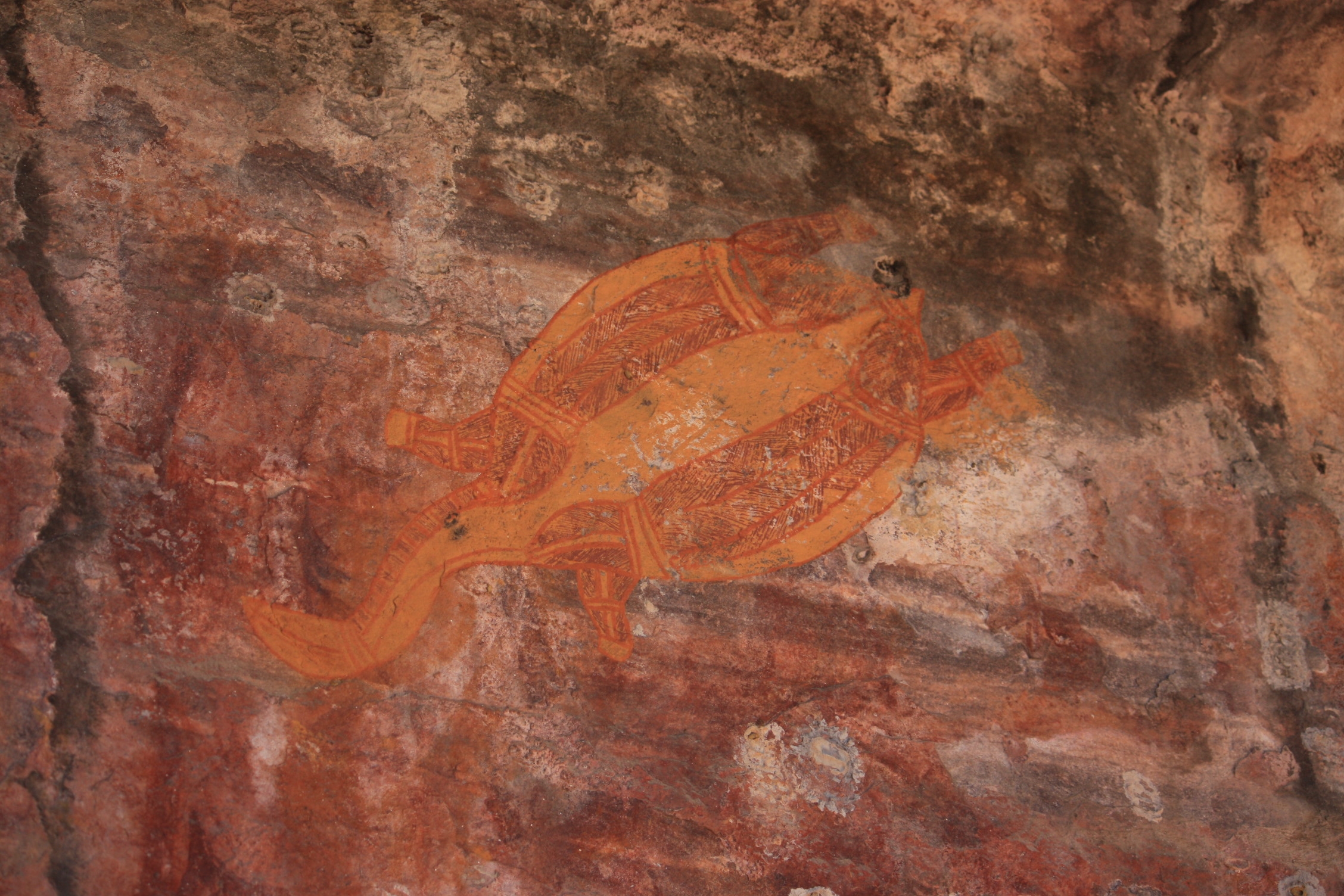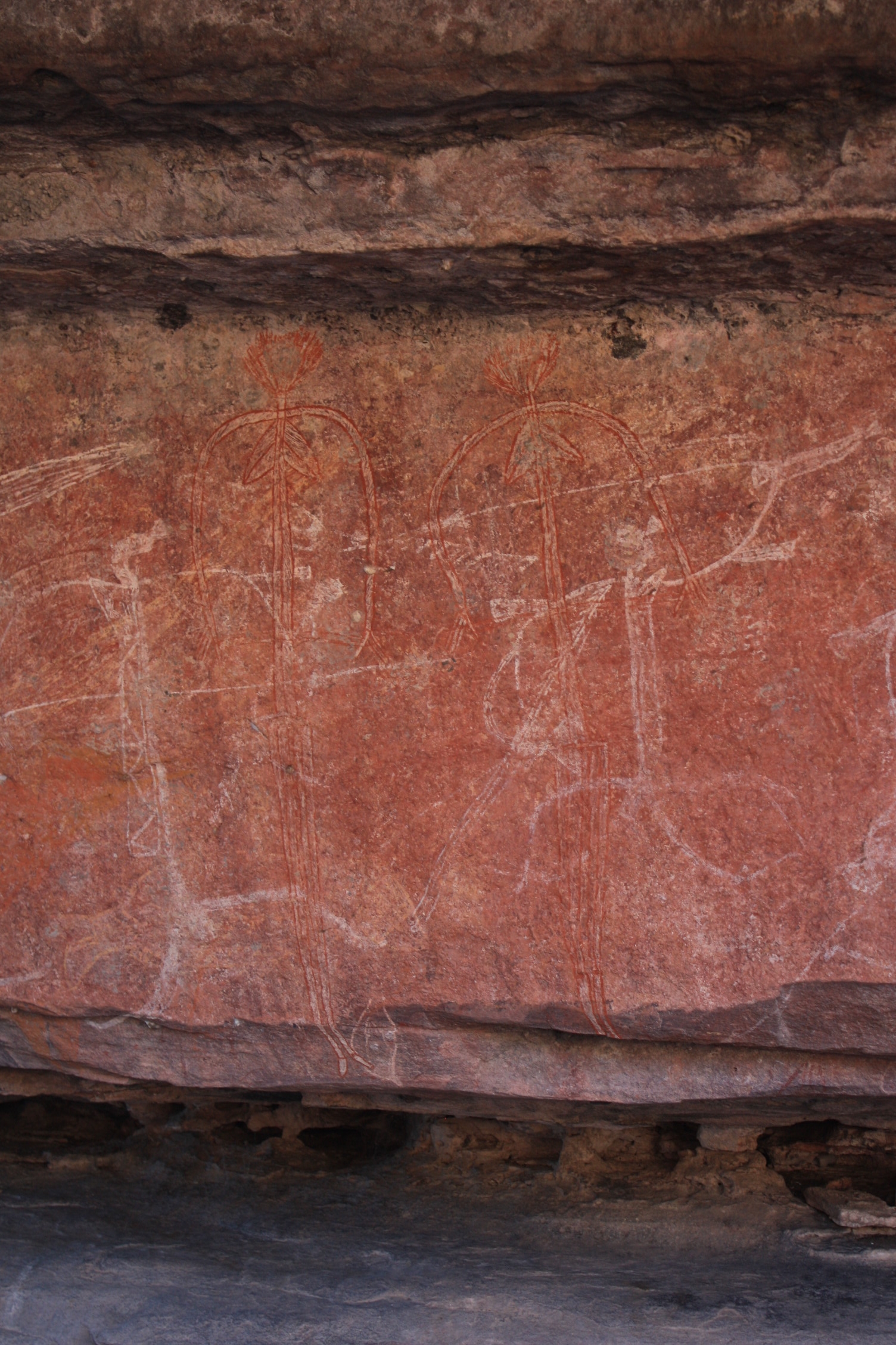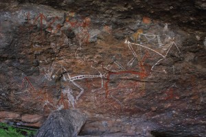 Les plus anciennes de ces peintures datent de 20 000 ans et même si celles-ci sont toujours sacrées aux yeux des aborigènes, elles ont été, au fil du temps, recouvertes par d’autres. Il est d’ailleurs surprenant de voir l’évolution de ces dessins. En effet, avec l’arrivée des colons, on voit apparaître des représentations de navires, d’homme avec chapeau sur la tête, pipe dans la bouche et mains dans les poches, de mains gantées…Aucun doute quant à l’origine de ce changement de source d’inspiration!