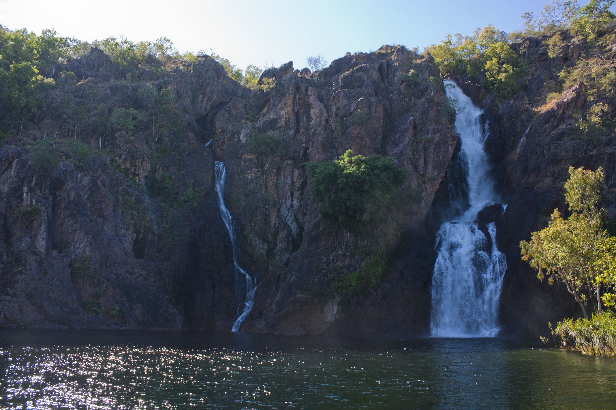Nous commençons cette nouvelle journée par les chutes Wangi. En saison sèche, il est normalement autorisé de s’y baigner mais le Wet ayant été particulièrement humide cette année, la piscine n’est pas encore réouverte. Le niveau d’eau est encore trop haut et il n’est pas encore certain qu’aucun « salties » n’y ait élu domicile. Des « freshies » devraient par contre être visibles ici puisqu’ils y habitent, mais nous n’en voyons pas.
