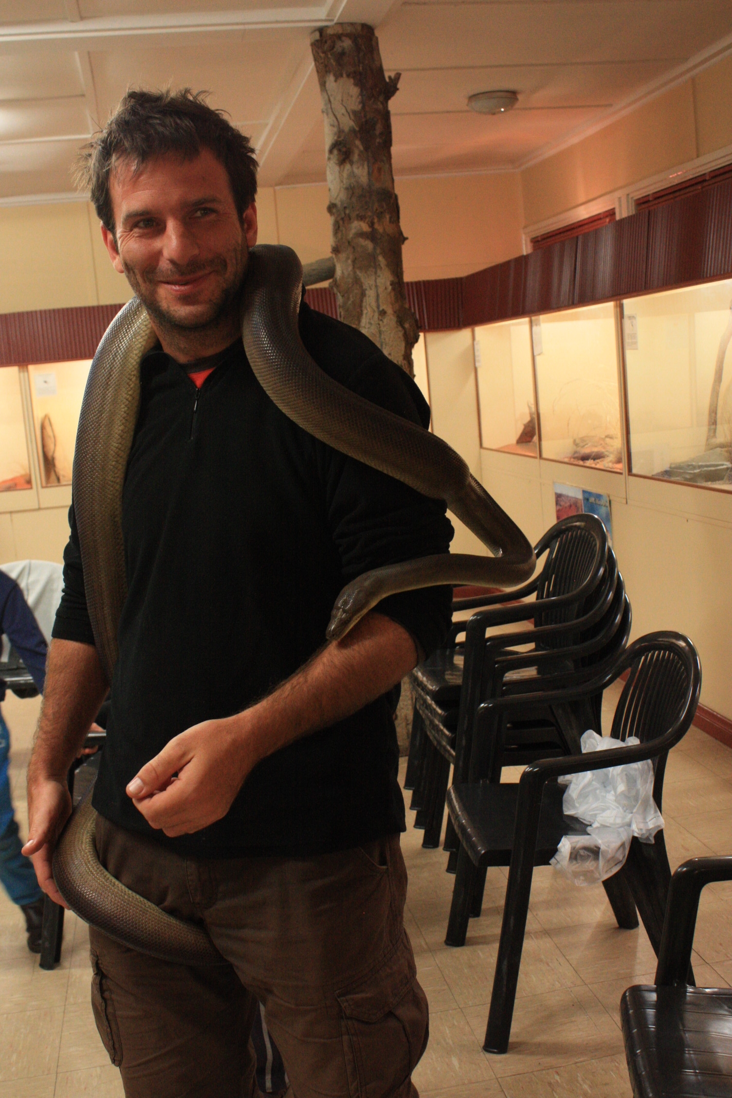 Nous nous amusons également pendant la séance « manipulation », à caresser lézard, blue-tongue et python et où nous apprenons plein de choses intéressantes, notamment à ne pas avoir peur des 18 espèces australiennes de serpents vénéneux (sur les 20 espèces mondiales). En effet, leurs dents sont tellement petites (comparées aux espèces africaines) qu’elles ne traversent bien souvent jamais le pantalon. Il suffit donc d’être correctement habillés et chaussés lorsqu’on randonne. Bref, nous recommandons chaudement ce petit centre où nous avons passé une très agréable matinée.