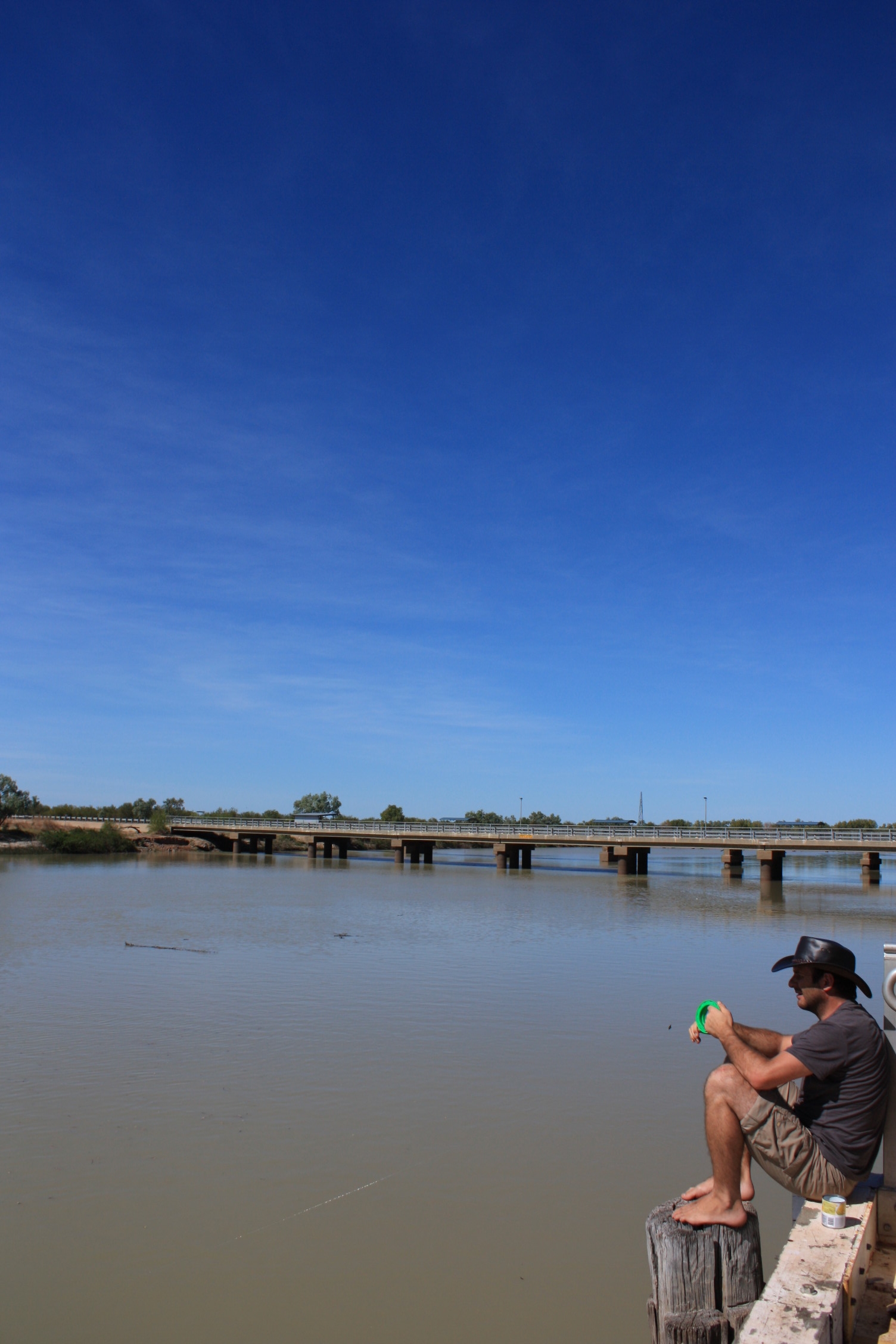 Nous atteignons ainsi la petite ville de Normanton, qui n’a pas grand chose à offrir à part de jolis bâtiments, une vieille gare et une belle rivière abritant crocodiles (eh oui, nous sommes de retour dans le nord)et barramundis (les gros poissons réputés du nord). André essaye bien d’en pêcher un mais visiblement, à la différence des ouananiches du Lac, ceux-ci ne sont pas attirés par le maïs.