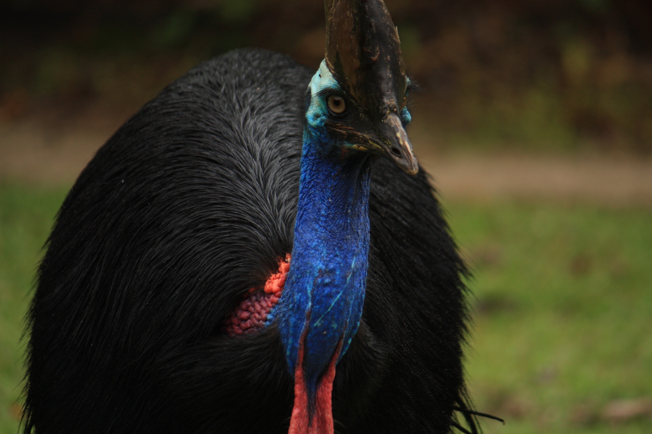Il existe 3 espèces de casoar, mais le plus commun est le casoar du sud, qui est le 3ème plus grand oiseau sur la planète, après l’autruche et l’émeu, mais le 2ème plus lourd, et curieusement, les femelles sont plus grosses que les mâles. Ce sont d’ailleurs ces derniers qui s’occupent de couver les oeufs et d’éduquer les poussins. Ces derniers naissent avec un plumage brun, afin de se camoufler au mieux au milieu de la végétation, et en grandissant, n’ayant alors plus de prédateurs, ils peuvent se parer de couleurs chatoyantes. Contrairement à ce que l’on peut penser, leur casque n’est pas fait de corne ou d’os, il est en fait mou et spongieux, et est recouvert d’une petite couche de kératine. Bien qu’ils se nourrissent essentiellement de fruits, les casoars sont omnivores et peuvent donc de temps en temps, manger des invertébrés et de petits vertébrés. Il s’agit habituellement d’oiseaux timides mais ils peuvent devenir très agressif. Il est ainsi fortement déconseillé de leur tourner le dos et bien évidemment de les nourrir. Enfin, il faut enfin savoir que ces oiseaux sont en danger d’extinction, du fait de la diminution de leur habitat, la forêt humide. 10% de cette population australienne est d’ailleurs actuellement menacée, suite à la destruction d’une partie de la forêt par le cyclone Yasi, survenu en février dernier.