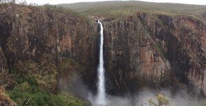 Ravis de cette rencontre, nous poursuivons notre route jusqu’au parc national Girringun, au niveau de la ville d’Ingham, dans lequel se trouvent la chute Wallaman. D’un dénivelé de 268m, celle-ci détient le record de hauteur en Australie et même si elle est, paraît-il, bien plus impressionnante pendant la saison humide, nous l’apprécions tout de même à sa juste valeur, et pour une fois, le temps brumeux ajoute du charme à cette cascade, qui déverse son « mince » filet d’eau, dans un gros vrombissement et qui camoufle sa base d’un épais nuage de vapeur.