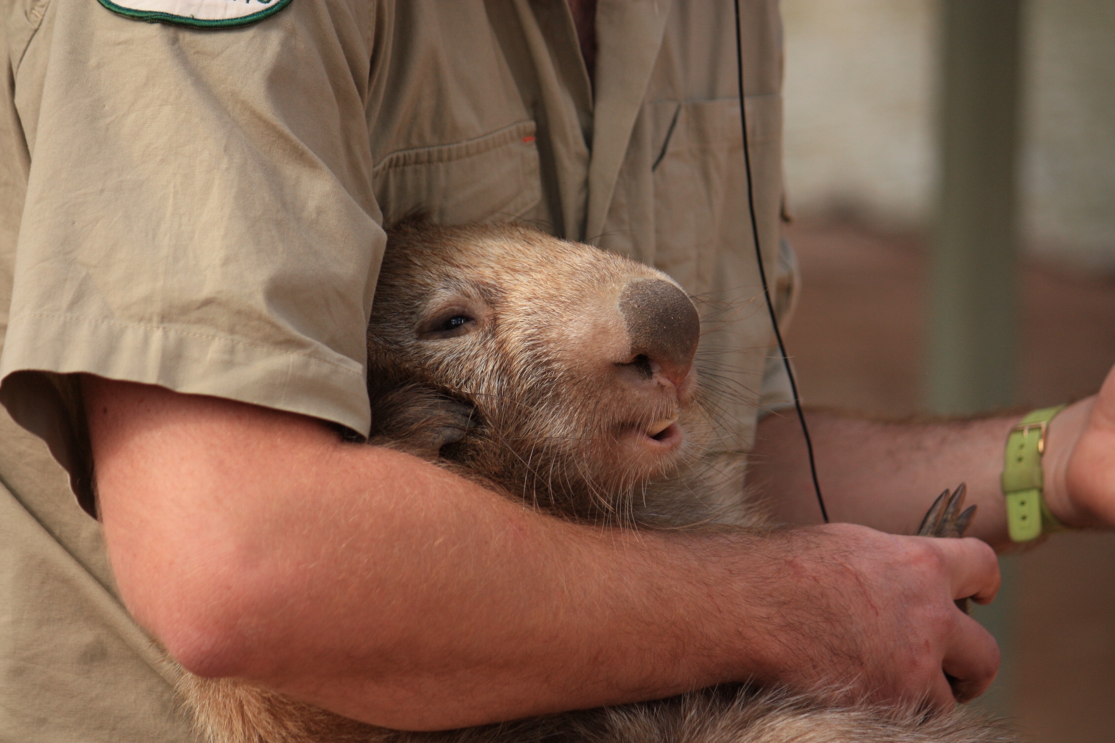 Rien à voir avec Tom le wombat, nourrit au biberon après avoir été trouvé dans la poche de sa mère décédée sur le bord de la route. Lorsque le parc a été fermé au public suite au cyclone Yasi qui a ravagé une partie du zoo, Tom a perdu 20% de son poids. Il a ensuite retrouvé son poids initial, depuis qu’il est de nouveau le centre d’attention de la « wombat experience »! Diagnostique du vétérinaire: Tom a souffert d’une dépression car il n’était plus suffisamment câliné.