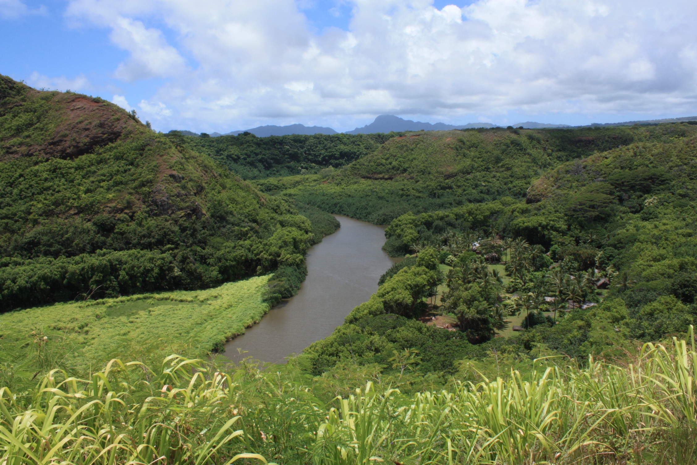 Nous continuons notre découverte de Kauai, l’île jardin, par la visite à Wailua, du petit village traditionnel hawaïen reconstitué, Kamokila. Celui-ci se trouve sur les rives de la rivière Wailua, la seule rivière navigable de l’archipel d’Hawaii. Les membres de la famille royale aimaient y faire du canoë et s’y baigner. Ainsi, de nombreux temples (heiau) ont été érigés le long des berges, en leur honneur.