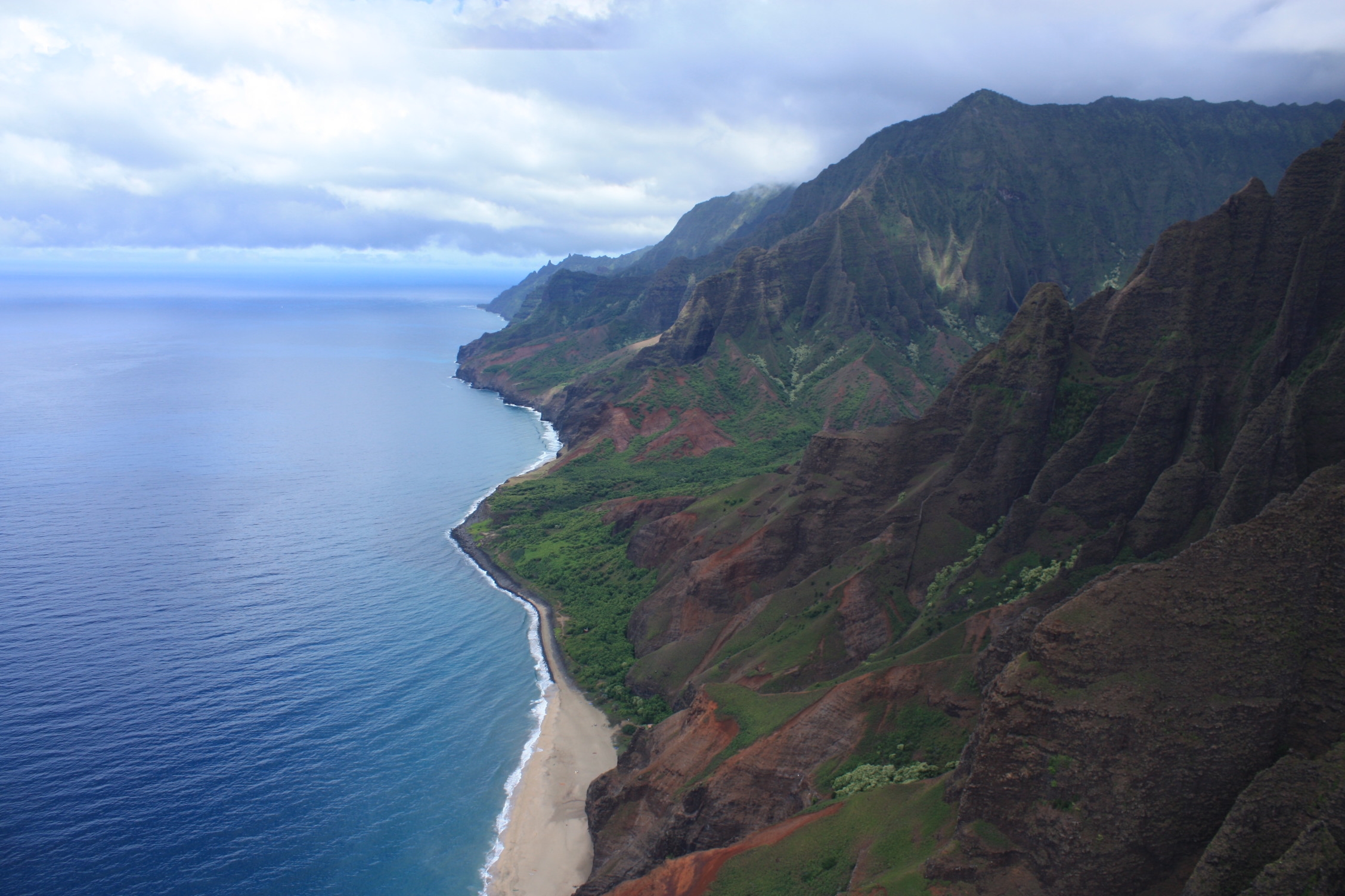 Le lendemain, après un tour dans le musée Kauai qui retrace l’activité volcanique de l’île, la faune et la flore, ainsi que la vie des premiers habitants et premiers colons, nous nous offrons le luxe d’un survol de l’île en hélicoptère. En effet, la côte Na Pali étant l’un des plus beaux sites d’Hawaii et n’ayant pas la possibilité de consacrer 3 jours à la randonnée qui permet de l’approcher, nous choisissons une solution à notre portée.