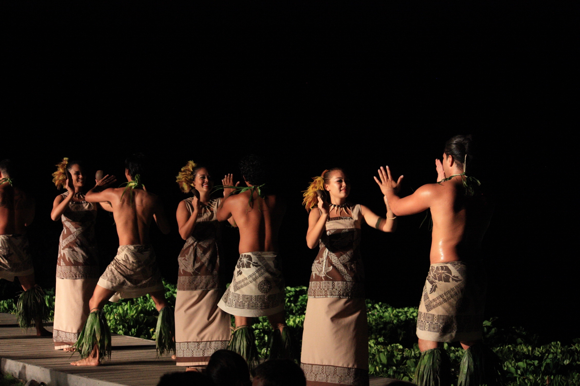 Nous retrouvons ici le haka des guerriers néo-zélandais et leurs tatoos au visage. Cependant, nous devons avouer que ces danseurs ne sont pas aussi imposants que leurs cousins maoris, qui nous impressionnaient à coups de langue bien tirée et de gros yeux! Les femmes ont ensuite enchaîné avec une danse utilisant les poi, des balles qu’elles font tournoyer à la manière des bâtons de majorettes.