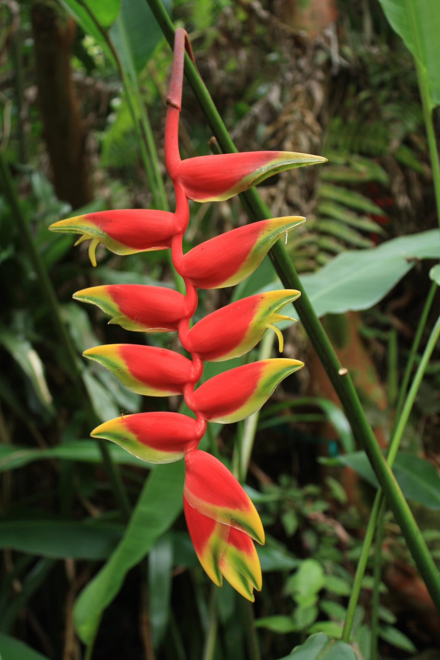 Le lendemain, nous quittons la ville de Kona pour rejoindre celle de Hilo, sur la côte est, notre point de chute pour la nuit. En chemin, nous nous rendons jusqu’au lookout sur la vallée Waipio, au nord, avant de longer la côte est jusqu’au jardin botanique tropical, dans la baie de Onomea. Il a été fondé en 1978 par un couple qui acheta ce terrain en friche et passa 6 années à le débroussailler, à récupérer des graines venant des 4 coins du monde, pour ensuite aménager ce magnifique jardin. Plus de 2000 espèces se côtoient aujourd’hui, toutes plus belles et surprenantes les unes que les autres, des fougères géantes aux orchidées, en passant par les différents gingembres aux parfums délicieusement enivrants et par les héliconias, tellement fascinants. Cette famille de fleurs aux couleurs chatoyantes et aux feuilles ressemblant à celles des bananiers, est véritablement le symbole des régions tropicales. Son inflorescence est d’ailleurs parfaite pour les oiseaux-mouches.
