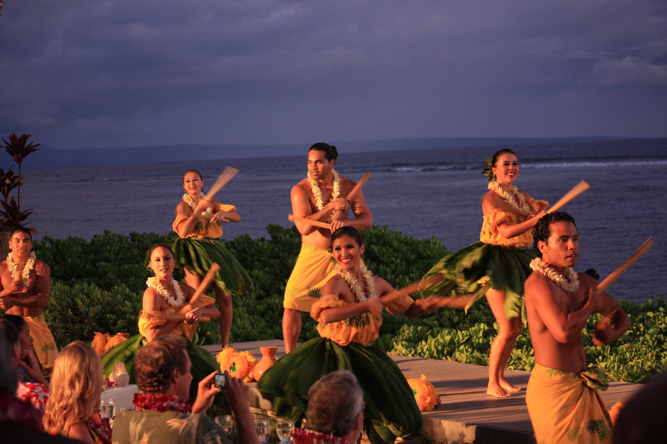 Les hawaiiens nous ont également enchantés par leur bonne humeur, leurs habits tout en couleurs et en fleurs, leur musique entraînante, leurs fleurs dans les cheveux ou autour du cou…Nous avons adoré assister au luau (le dîner spectacle), et nous le conseillons à toute personne venant visiter Hawaii. Il s’agit, selon moi, d’un passage obligé pour découvrir la culture polynésienne traditionnelle, avec leurs danses pleines de douceurs. Un gros coup de coeur d’ailleurs, pour le porc Kailua, découvert au cours de ce repas, et cuit à l’aide de pierres chaudes, à l’étouffée dans un four souterrain en pierres de lave. Un régal!
