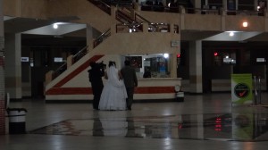 En début de soirée, nous prenons à nouveau le chemin du terminal de bus pour continuer notre route, en direction de Tupiza. Mais en attendant notre bus, nous prenons en pleine figure la pauvreté de la Bolivie: plusieurs couples de jeunes mariés, des confettis encore plein les cheveux, viennent ici se faire filmer et prendre en photo, à l’intérieur de ce terminal flambant neuf, visiblement symbole du luxe pour eux…Ce hall glacial comme souvenir de mariage, quelle tristesse…