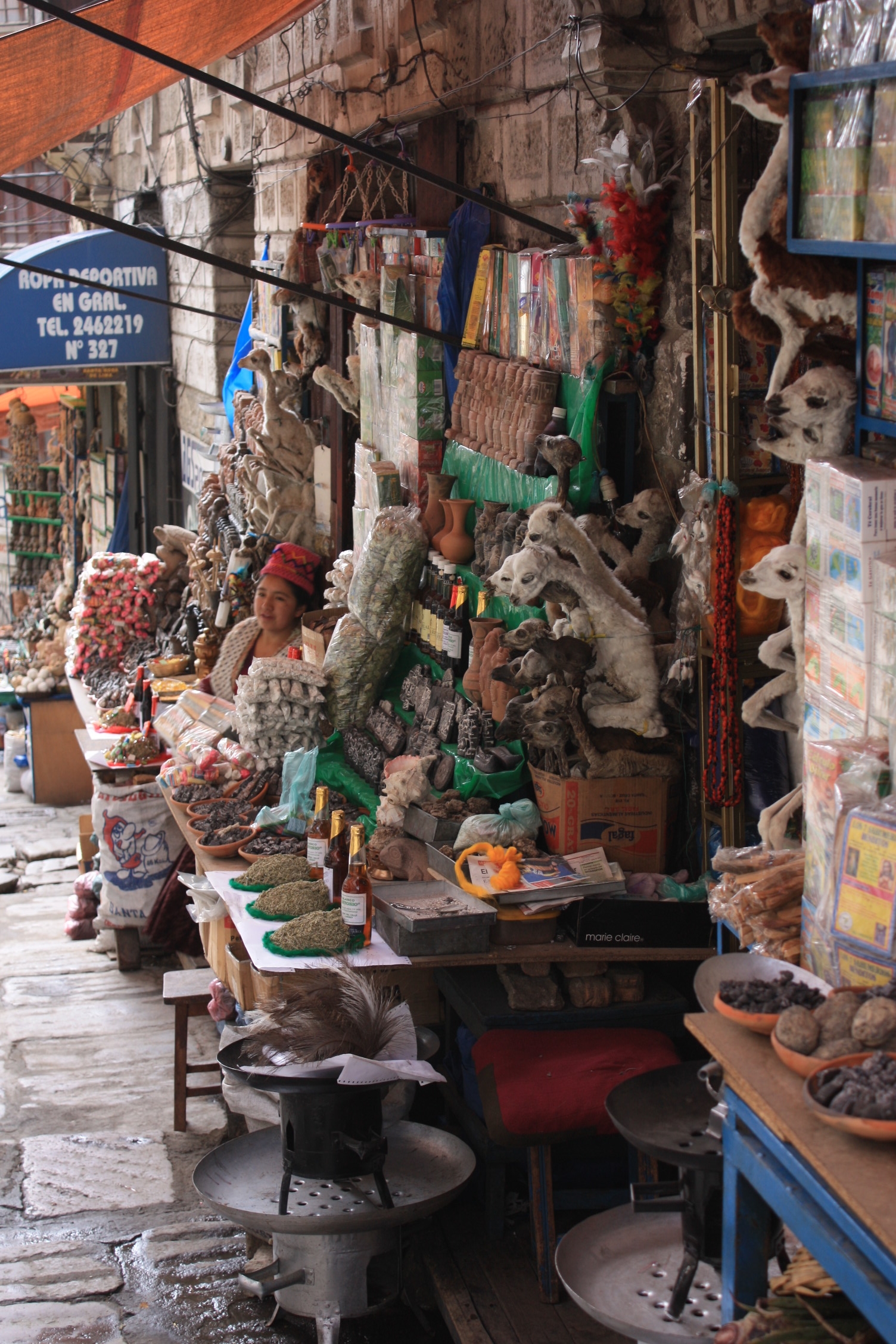 C’est tout de même le coeur triste que nous arpentons donc les rues sans intérêt de la ville qui n’a selon nous, aucun charme. Pas même de place des armes comme nous avions l’habitude depuis l’Equateur et le Pérou, nous ne trouvons ici qu’une rue bruyante, en guise de centre-ville. Nous apprécions tout de même les quelques boutiques près de notre hôtel, où se rassemblent les « sorcières ». On y trouve ainsi des foetus de lamas (à enterrer sous la première pierre de sa maison, en guise de chance), des étoiles de mer séchées et autres bizarreries dont nous ignorons l’usage, et une multitude de remèdes de grand-mères que nous n’avons pas osé tester.