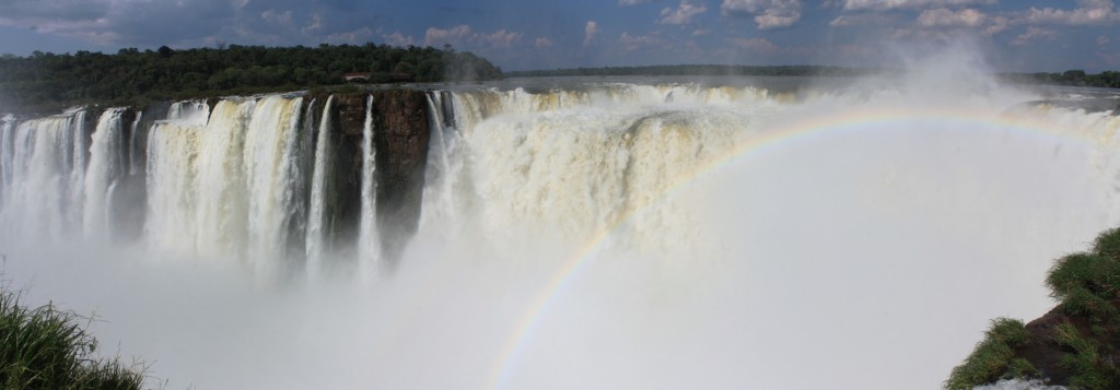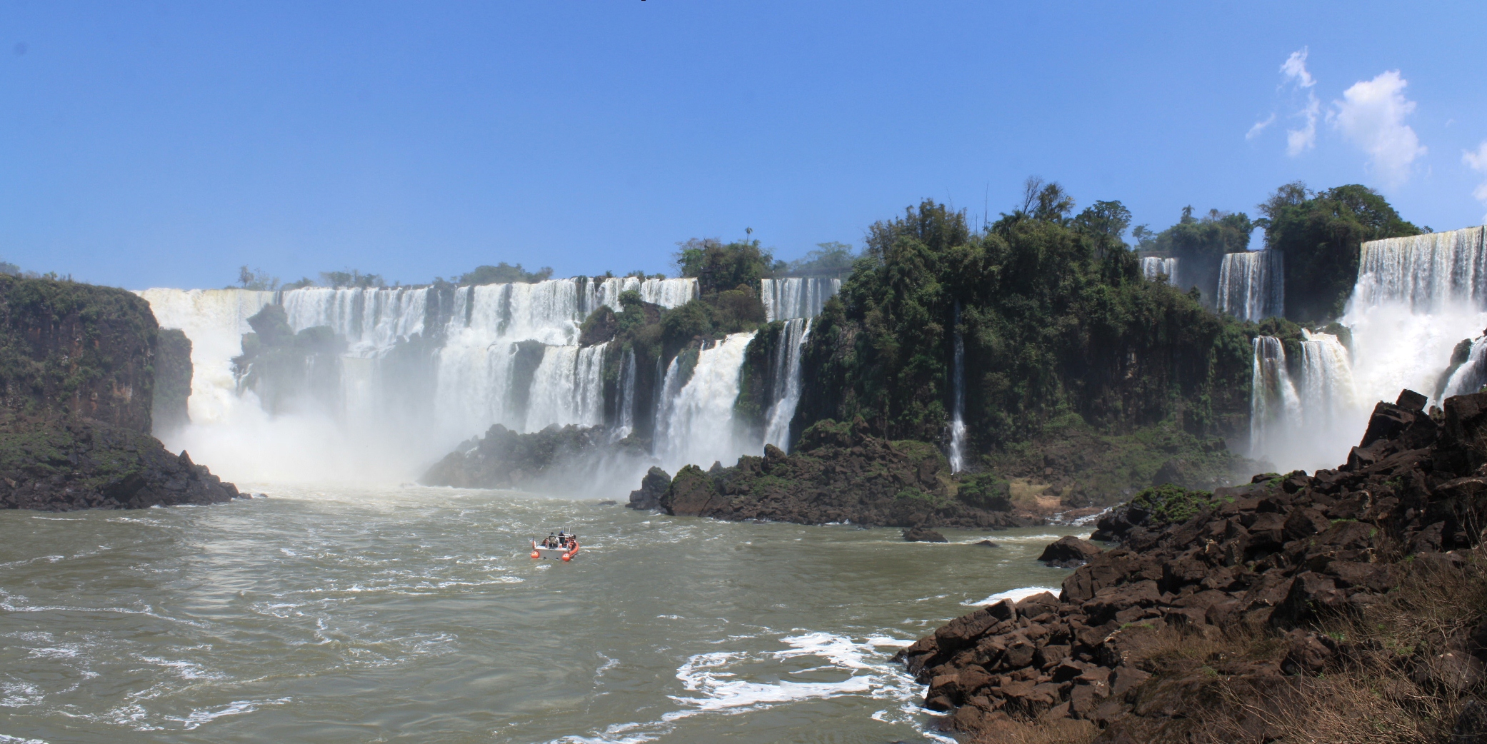 Nous voici enfin à Puerto Iguazu, après 24h de bus. Situées à la frontière entre l’Argentine et le Brésil, les chutes d’Iguazu, sont en fait composées de 275 cascades, qui s’étendent sur plus de 2,5km de long. Elles sont réparties entre ces 2 pays, mais la majorité d’entre elles sont localisées du côté argentin.
