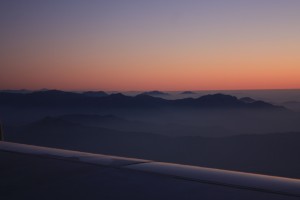 Mardi 1er novembre, 20h25, nous quittons Santiago de Chili, après avoir bouclé une dernière fois nos sacs à dos. Nous survolons les Andes au soleil couchant; nous ne pouvons que distinguer les milliers de sommets enneigés qui s’étendent à perte de vue devant nos yeux, si petits vus du ciel, mais dont les hauteurs vertigineuses nous auront tant narguées au cours de ces 3 derniers mois.