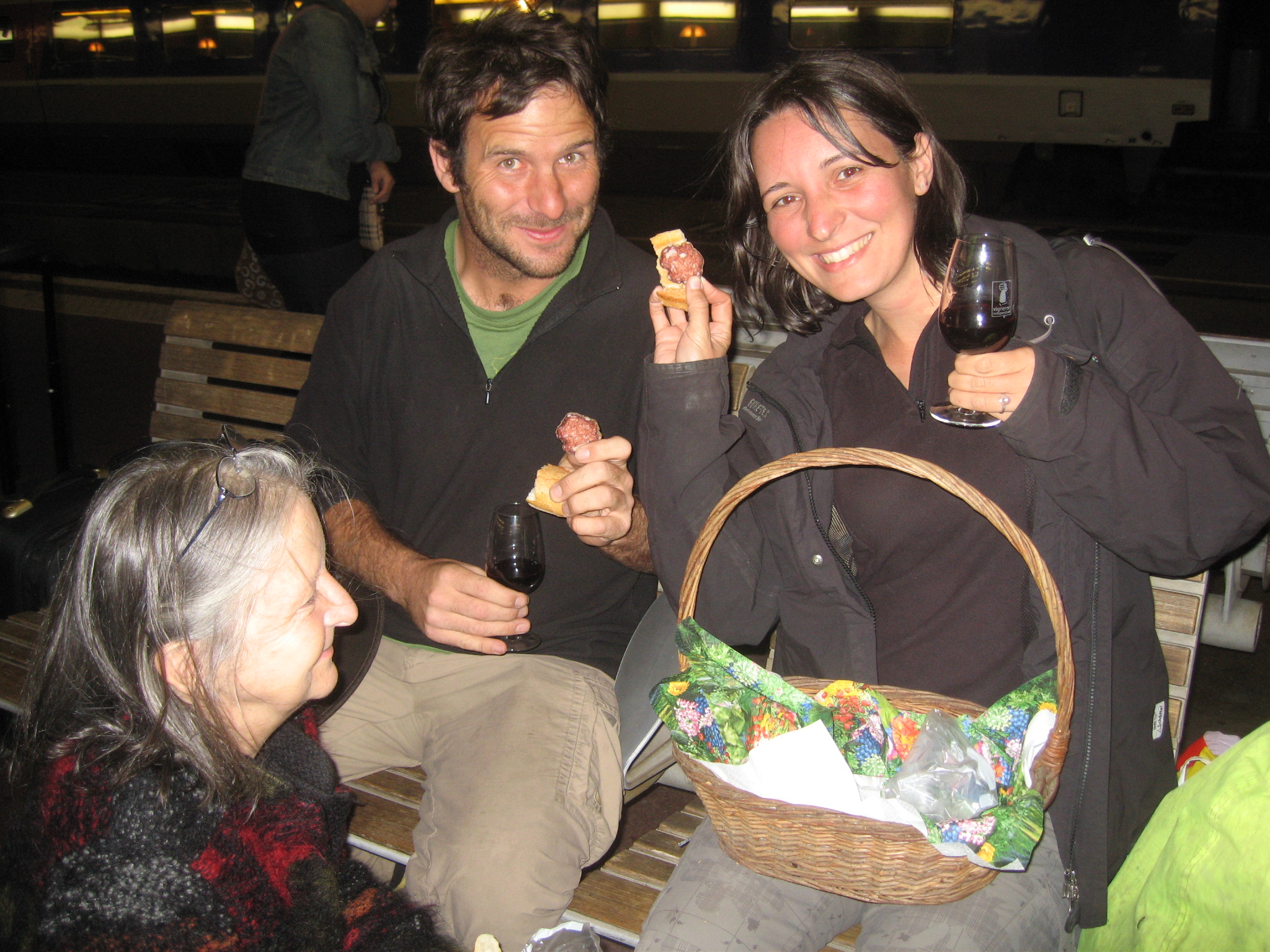 Nous nous attardons sur ce quai, ils ont une surprise pour nous: pas de collier de fleurs exotiques en guise de bienvenue, mais un panier, chargé de victuailles de chez nous. Il est 23h passées, nous entamons la baguette, le saucisson, le fromage de chèvre et trinquons au rouge. Aaah les petits bonheurs ne sont pas les moindres, mon coeur est léger, j’aurais le temps, plus tard, de m’apitoyer sur ce retour.